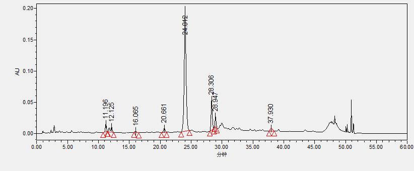 流動(dòng)相A:甲醇;流動(dòng)相B:0.1%甲酸溶液,梯度洗脫