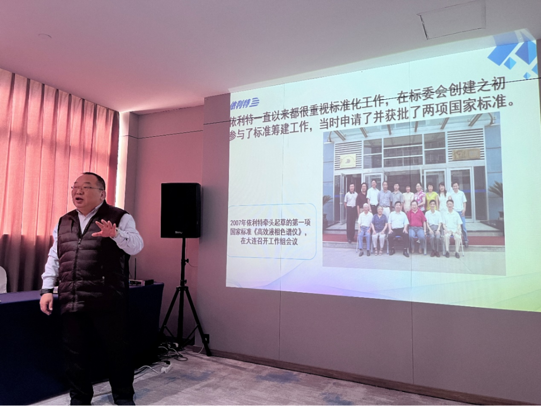 本次杭州會(huì)議為工作組首次會(huì)議。會(huì)上首先由起草單位蘇州依利特科技集團(tuán)有限公司董事長(zhǎng)李彤博士做《依利特液相色譜與標(biāo)準(zhǔn)化發(fā)展之路》開場(chǎng)報(bào)告。李彤博士首先介紹了公司潛心鉆研30載液相色譜歷程,其次闡述了以“系列全、產(chǎn)線全、覆蓋全”為特點(diǎn)的公司產(chǎn)品及服務(wù),后帶著深切的感情回憶了依利特與分析儀器標(biāo)委會(huì)的長(zhǎng)達(dá)將近20年的合作友誼。公司在分析儀器標(biāo)委會(huì)的支持下,已經(jīng)牽頭或參與編制了十多項(xiàng)國(guó)家標(biāo)準(zhǔn)!李彤博士對(duì)標(biāo)委會(huì)表達(dá)了誠(chéng)摯感謝!