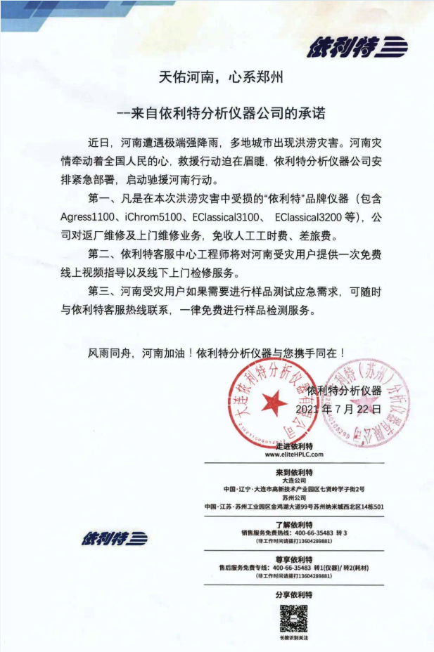 天佑河南,心系鄭州——來自依利特分析儀器公司的承諾