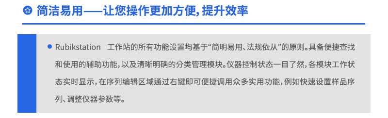 Rubikstation 網(wǎng)絡(luò)版液相色譜數(shù)據(jù)工作站所有功能設(shè)置均基于“簡明易用、法規(guī)依從”的原則,確保您的色譜儀器分析工作流程能減少不必要的操作環(huán)節(jié),使用者能更快適應(yīng)軟件邏輯和界面,提高工作效率。在靈活的模塊功能及報告設(shè)計支持前提下,同時滿足嚴格的合規(guī)性要求,提供強大的數(shù)據(jù)安全保障、完善的審計追蹤功能。