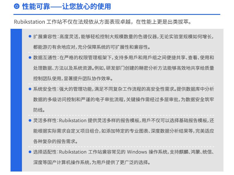 依利特30年技術(shù)沉淀打造合規(guī)數(shù)據(jù)平臺,嚴格遵循NMPA/FDA法規(guī)要求。Rubikstation網(wǎng)絡(luò)版支持多級權(quán)限管理與全流程審計追蹤;Kromstation工作站滿足GMP/GLP合規(guī)需求,提供電子簽名與定制報告功能。雙平臺覆蓋實驗室數(shù)據(jù)管理全場景,確保數(shù)據(jù)安全與可追溯性,為制藥與檢測領(lǐng)域提供智能