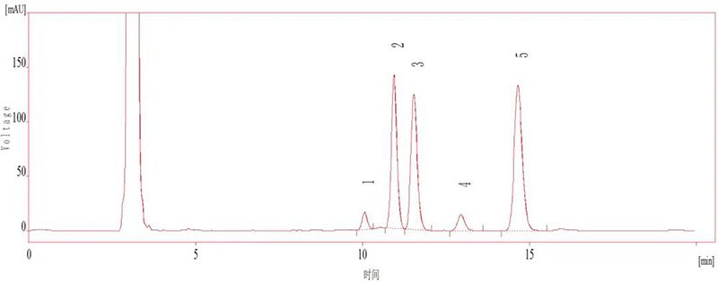 精密量取本品2mL,置100mL容量瓶中,用流動相溶解并稀釋至刻度,搖勻,濾過,精密量取續(xù)濾液20μL,注入液相色譜儀,記錄色譜圖。