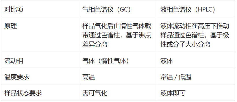 兩者在一些基本要素上是相通的,像保留值、塔板數(shù)、塔板高度、分離度、選擇性等;基礎理論方面,塔板理論與速率方程也大致相同。不過,氣相色譜儀用氣體作為流動相,液相色譜儀則用液體作為流動相,而液體和氣體的特性存在差異,再加上兩者使用的實驗儀器和操作條件也不一樣,所以它們之間存在不少區(qū)別,主要體現(xiàn)在以下幾個方面: