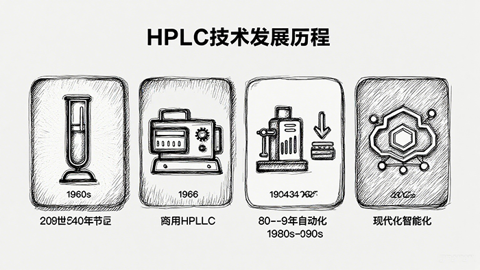 高效液相色譜技術(shù)起源于20世紀(jì)40年代的柱色譜法,但真正意義上的現(xiàn)代HPLC系統(tǒng)誕生于60年代末。1966年,第一臺(tái)商用HPLC儀器的問世標(biāo)志著分析化學(xué)進(jìn)入全新紀(jì)元。70年代,高壓泵、高效固定相和靈敏檢測器的出現(xiàn)使分離效率大幅提升,分析時(shí)間從小時(shí)級(jí)縮短至分鐘級(jí)。