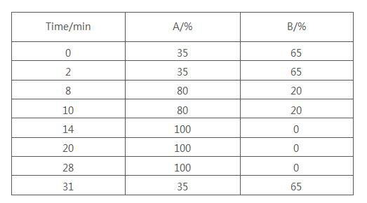 流動(dòng)相: 流動(dòng)相A:乙腈,