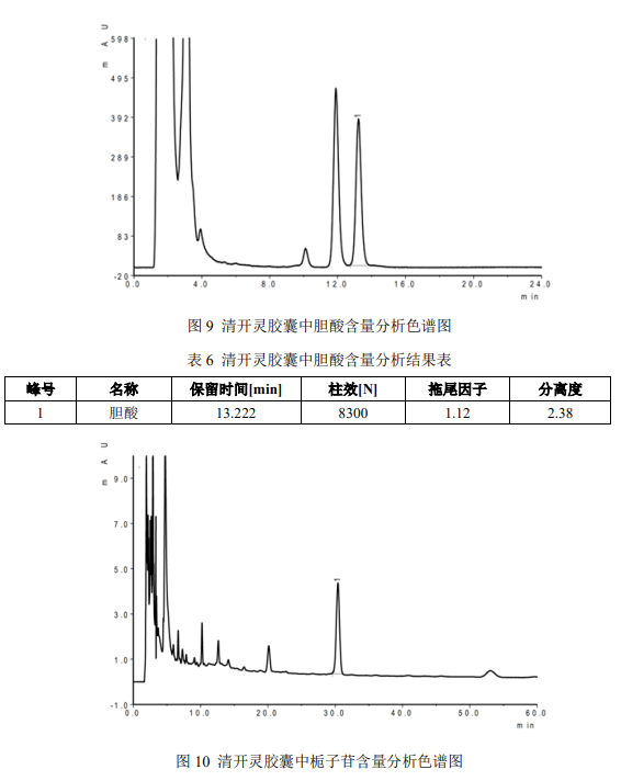 依利特使用新款的 EClassical 3200 液相色譜儀搭配 Supersil ODS2 和 SinoChrom ODS-BP 色譜柱,對(duì)清開靈膠囊中膽酸、梔子苷、黃芩苷含量進(jìn)行了分析檢測(cè),結(jié)果顯示目標(biāo)物柱效高、峰形好,滿足定性定量分析的需求。