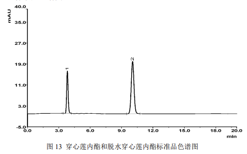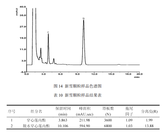 依利特使用新款的 EClassical 3200 液相色譜儀搭配 Hypersil ODS2 色譜柱,對(duì)新雪顆粒中穿心蓮內(nèi)酯和脫水穿心蓮內(nèi)酯進(jìn)行了分析檢測(cè),結(jié)果顯示目標(biāo)物峰形良好,柱效高,可以達(dá)到基線分離,滿足定性定量分析的需求。