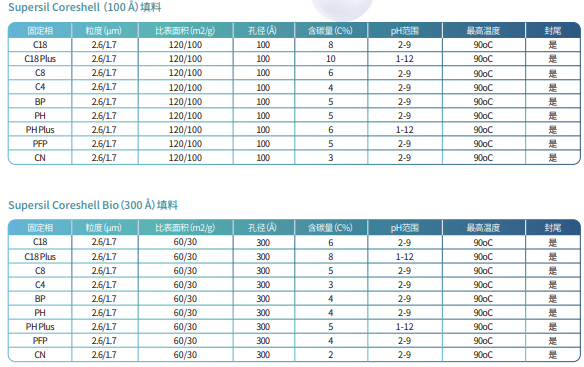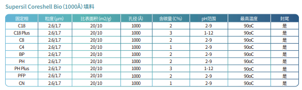 Supersil Coreshell 系列色譜柱是依利特新推出的一款核殼色譜柱。該色譜柱填料是以硅膠為基質(zhì),在表面多孔填料上鍵合不同官能團的實心核顆粒。