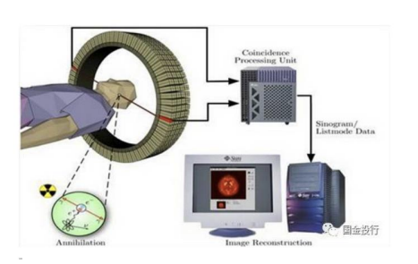 PET 裝備硬件部分由 PET 掃描架、探測器環(huán)、電子線路和計算機系統(tǒng)、圖像工作站組成。軟件部分包括圖像重建和圖像處理系統(tǒng)。