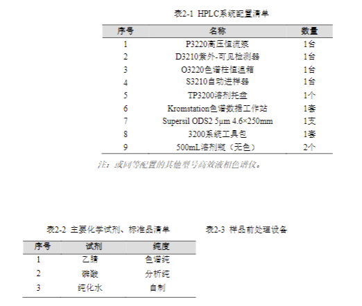 本實(shí)驗(yàn)參考《GB/T 5750.8-2023 生活飲用水標(biāo)準(zhǔn)檢驗(yàn)方法 第 8 部分:有機(jī)物指標(biāo)》,采用依利特公司生產(chǎn)的 EClassical 3200 高效液相色譜儀,對(duì)生活飲用水中的丙烯酸的液相色譜測(cè)定法進(jìn)行方法驗(yàn)證。