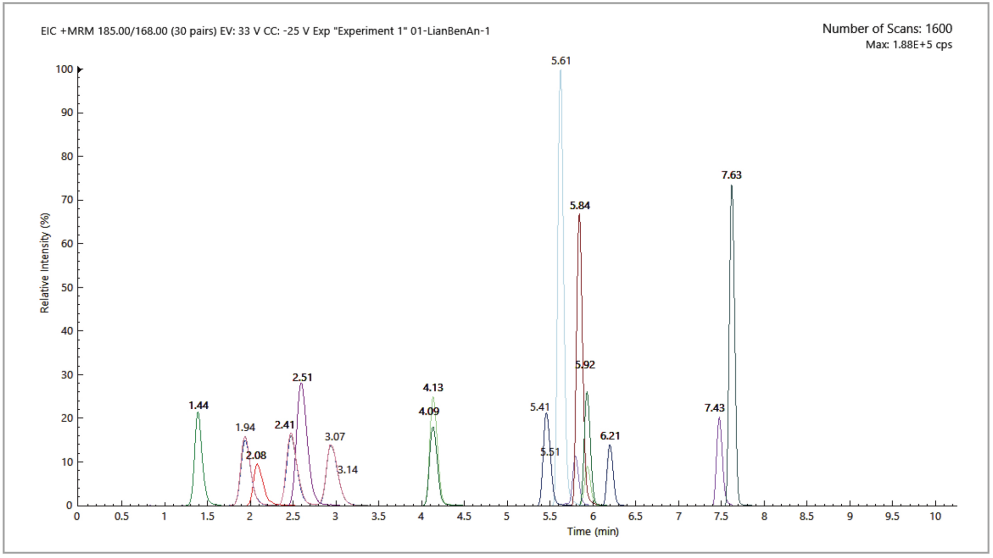 目前,我國(guó)生態(tài)環(huán)境部發(fā)布標(biāo)準(zhǔn) HJ1210-2021《土壤和沉積物 13 種苯胺類(lèi)和 2 種聯(lián)苯胺類(lèi)化合物的測(cè)定 液相色譜 - 三重四極桿質(zhì)譜法》,為環(huán)境介質(zhì)中土壤和沉積物中苯胺類(lèi)和聯(lián)苯胺類(lèi)化合物的測(cè)定提供技術(shù)保障和法規(guī)依據(jù)。本文針對(duì)該標(biāo)準(zhǔn),依利特科技采用 EClassical 3200L-MS2 Vertical 9100 液質(zhì)聯(lián)用系統(tǒng),成功建立了土壤和沉積物中 15 種苯胺類(lèi)和聯(lián)苯胺類(lèi)化合物的分析方案,根據(jù)保留時(shí)間及離子比率進(jìn)行快速準(zhǔn)確定性,其檢出限完全滿足標(biāo)準(zhǔn)中的檢測(cè)限量要求,輕松應(yīng)對(duì)日常檢測(cè)分析要求。