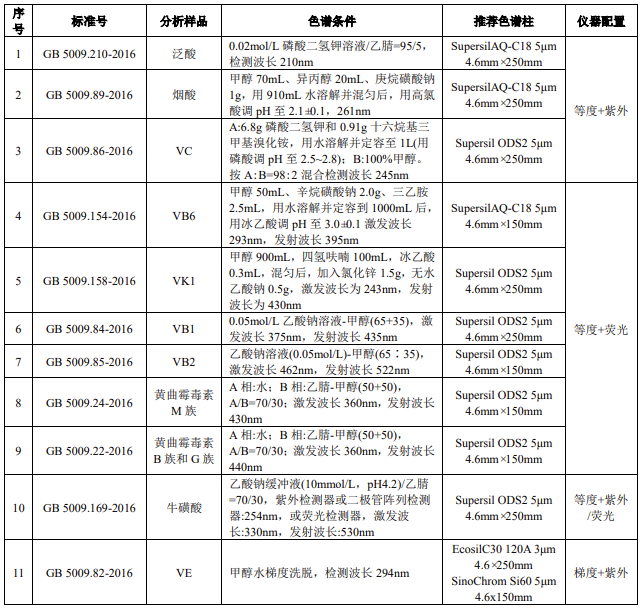 4.2 食品中常見分析物質的色譜柱推薦及儀器配置 ........................... 15