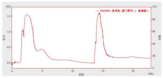 本實(shí)驗(yàn)參考食品安全國(guó)家標(biāo)準(zhǔn) 食用油中極性組分 (PC) 的測(cè)定 (GB 5009.202-2016) 對(duì)食用油中極性組分 (PC) 進(jìn)行測(cè)定,結(jié)果顯示食用油中非極性樣品峰結(jié)束時(shí)間在 6.7 min,符合 GB 5009.202-2016 標(biāo)準(zhǔn)要求。
