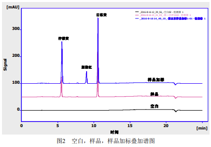 本實(shí)驗(yàn)參考 GB/T 21916-2008《水果罐頭中合成著色劑的測定 高效液相色譜法》 及 GB/T 5009.35-2003《食品中合成著色劑的測定》,采用大連依利特公司生產(chǎn)的高效液相色譜儀,對(duì)著色劑標(biāo)準(zhǔn)品、線性及加標(biāo)回收率等進(jìn)行檢測方法驗(yàn)證,并檢測實(shí)際飲品中檸檬黃、胭脂紅、日落黃的添加情況。