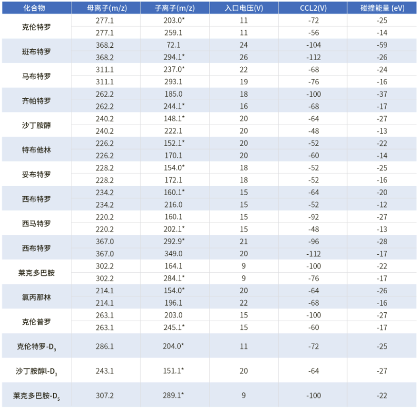 [1. 前處理方法參考 GB/T22286-2008《動物源性食品中多種 β- 受體激動劑殘留量的測定 液相色譜串聯(lián)質(zhì)譜法》。