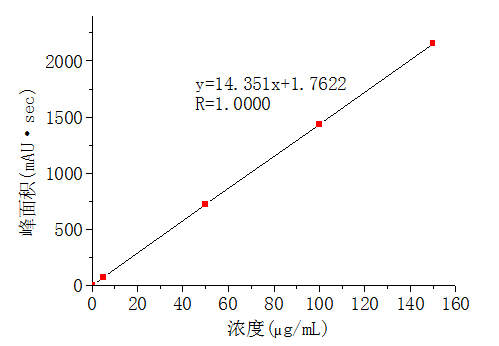 圖3-5  標(biāo)準(zhǔn)品濃度與峰面積線性關(guān)系圖