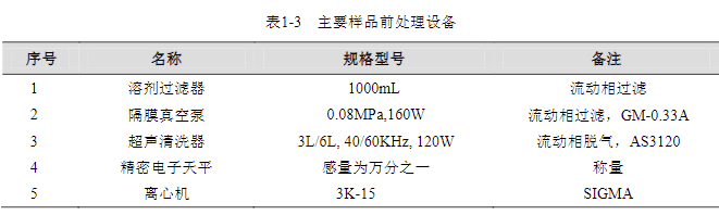 實(shí)驗(yàn)過程中其它玻璃器皿還包括容量瓶 (100mL、50mL、25mL、10mL)、移液槍 (0~1000μL,0~5000μL)、移液槍槍頭 (1mL,5mL)、一次性 PVC 手套、一次性口罩、進(jìn)樣針、濾膜等若干。