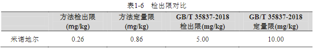 從以上結(jié)果可知,本系統(tǒng)的米諾地爾檢測(cè)的靈敏度明顯低于國(guó)標(biāo)中的要求,即符合檢測(cè)要求。