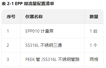 依利特通過 EPP010 計(jì)量泵、SS316L 不銹鋼三通和 PEEK 管 / SS316L 不銹鋼管路,為 EPP 計(jì)量泵穩(wěn)定的微流量輸送提出了解決方案,供相關(guān)人員參考使用。