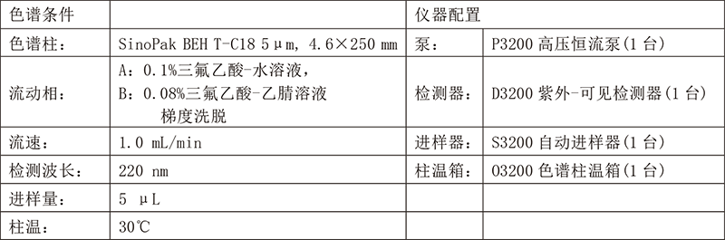 依利特新款的EClassical 3200液相色譜儀搭配新推出的SinoPak BEH T-C18色譜柱,對蜂毒干粉中蜂毒溶血肽成分進行分析,柱效高,峰形好,滿足定性定量分析的需求。