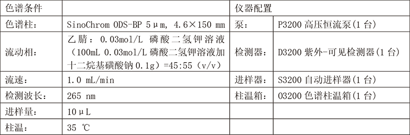 色譜條件及配置: