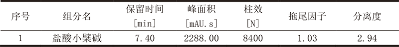 依利特新款的EClassical 3200液相色譜儀搭配經(jīng)典的SinoChrom ODS-BP色譜柱,對(duì)四方胃片中的鹽酸小檗堿成分進(jìn)行分析,峰形對(duì)稱(chēng)性好,分離度高,滿(mǎn)足定性定量分析的需求。