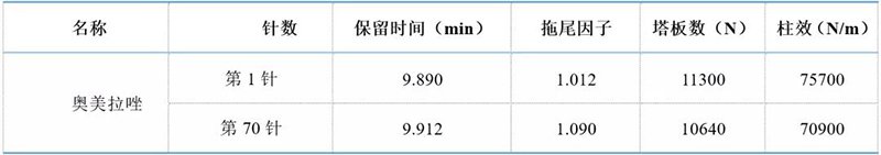 使用SinoPak BEH T-C8 色譜柱分析奧美拉唑腸溶膠囊,不僅柱效高,峰形好,分離度滿足藥典要求,而且連續(xù)進(jìn)樣七十針柱效沒有明顯的下降。SinoPak BEH T-C8 色譜柱是分析奧美拉唑等堿性化合物的不二之選。