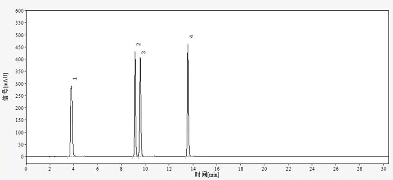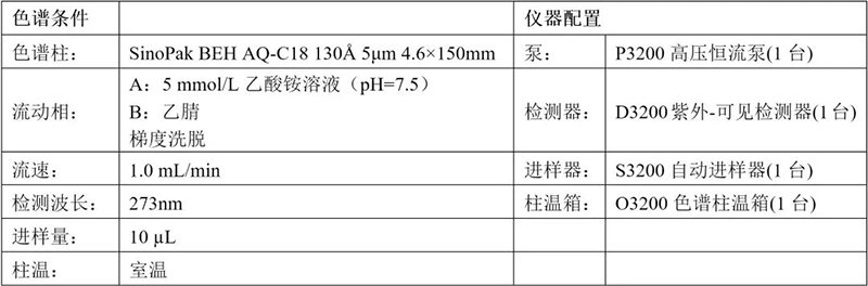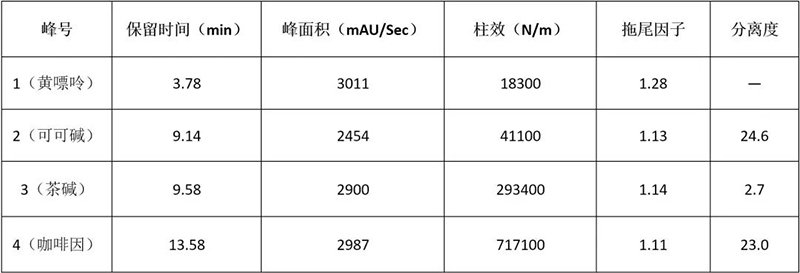 依利特新款的EClassical 3200液相色譜儀,搭配新款SinoPak BEH AQ-C18色譜柱,能很好的對(duì)咖啡因、可可堿、茶堿、黃嘌呤進(jìn)行分析,且峰形良好,滿足定性定量分析的要求。